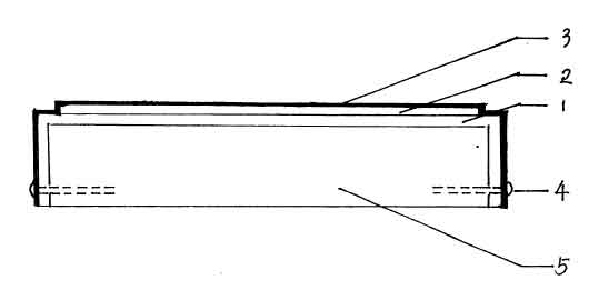 途中1為金屬面板,2為金剛砂層,3為電鍍金屬層,4為金屬面板與底座連接的緊固螺釘,5是底座。